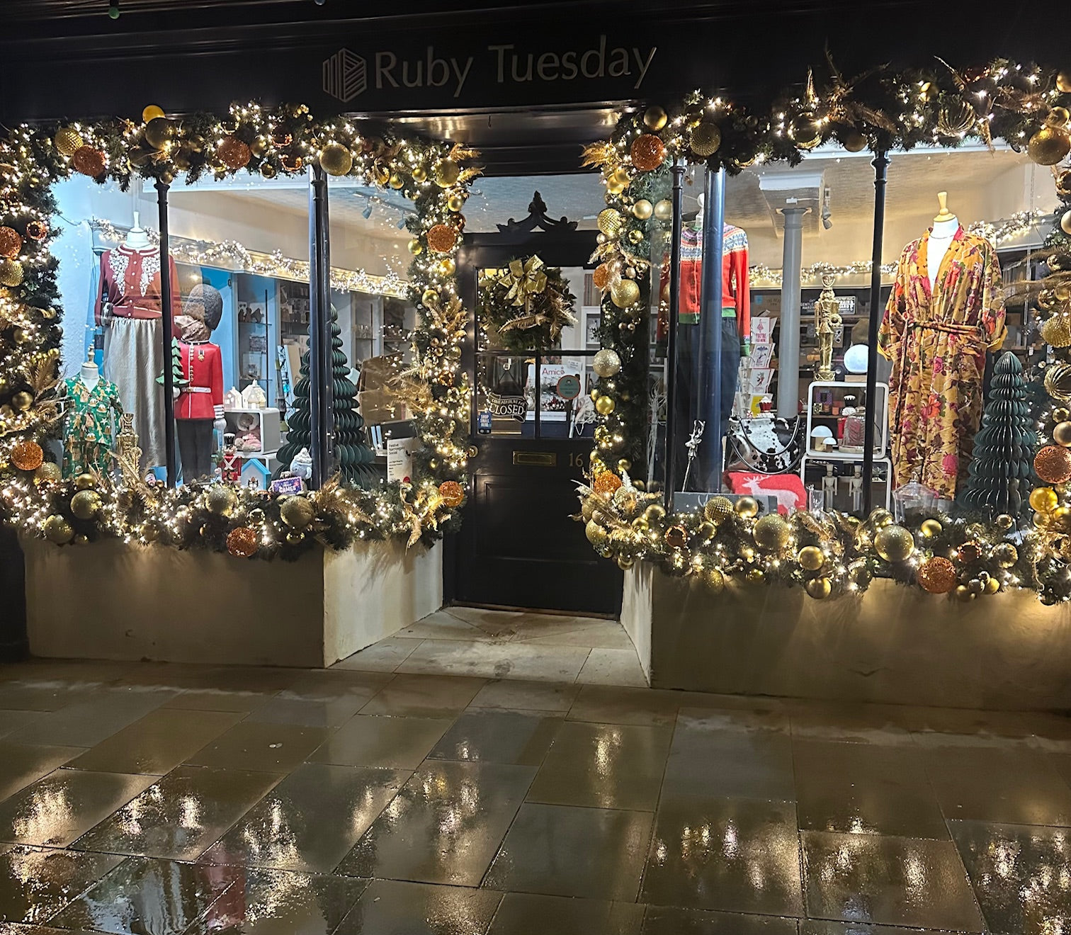 traditional golds and greens this year perfectly framing our historal shop frontage